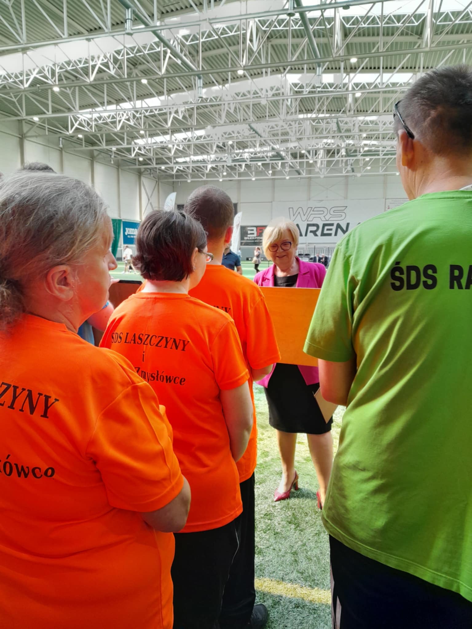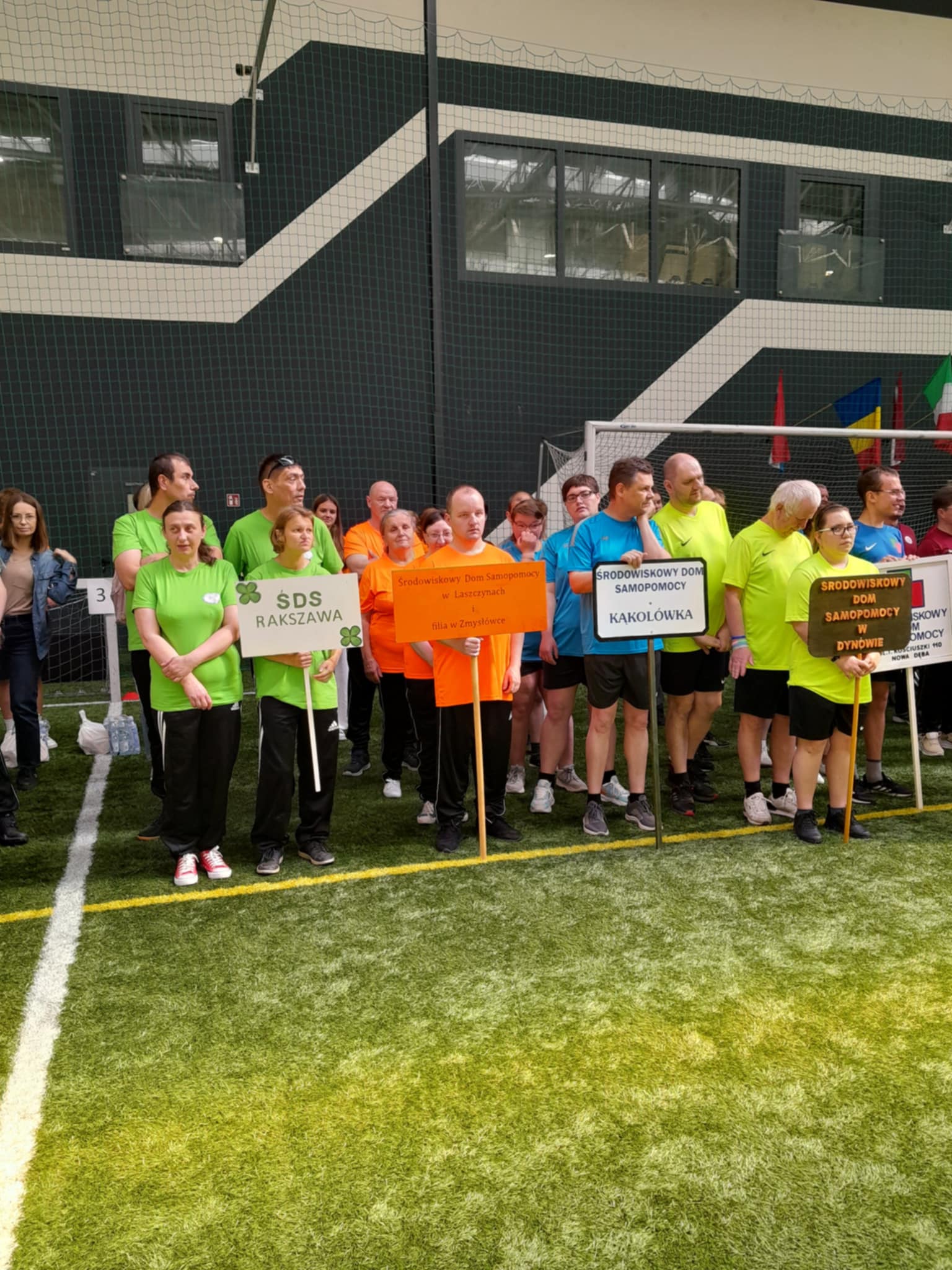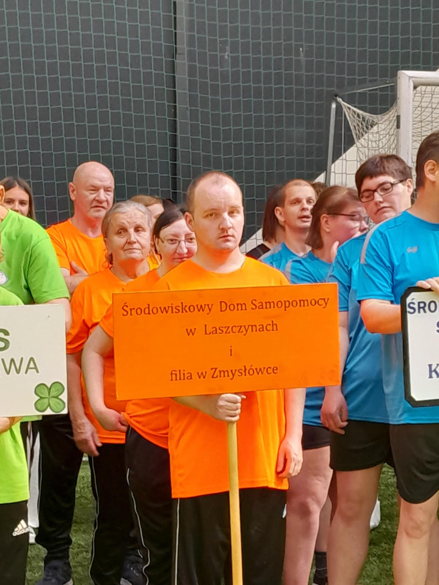 W gronie uczestników zawodów znalazła się również delegacja Środowiskowego Domu Samopomocy w Laszczynach i Filii w Zmysłówce. Nasi reprezentanci konkurowali w następujących dyscyplinach: rzut woreczkiem do celu, strzał do bramki unihokejem, rzut do kosza oraz strzał piłką nożną do bramki.