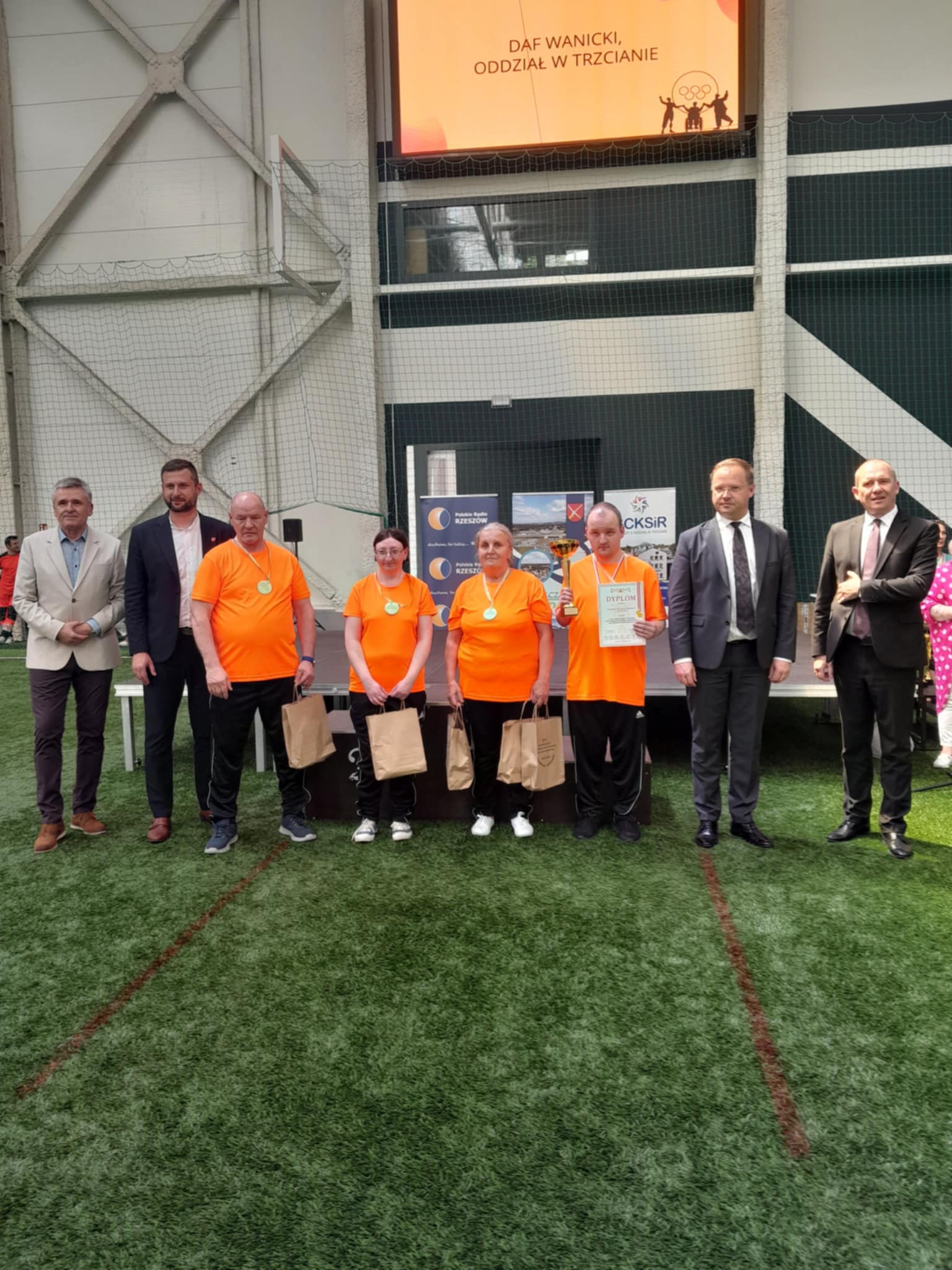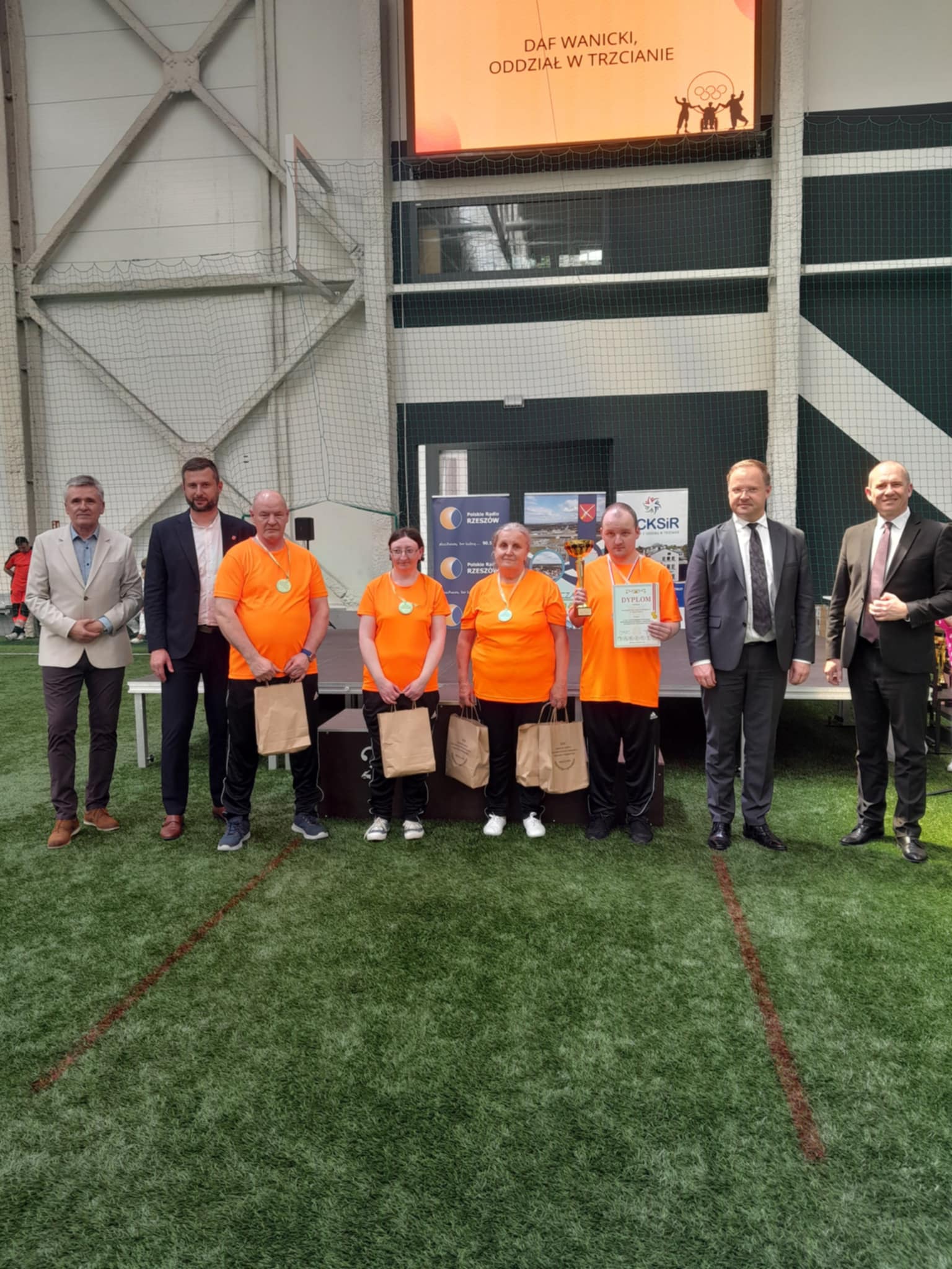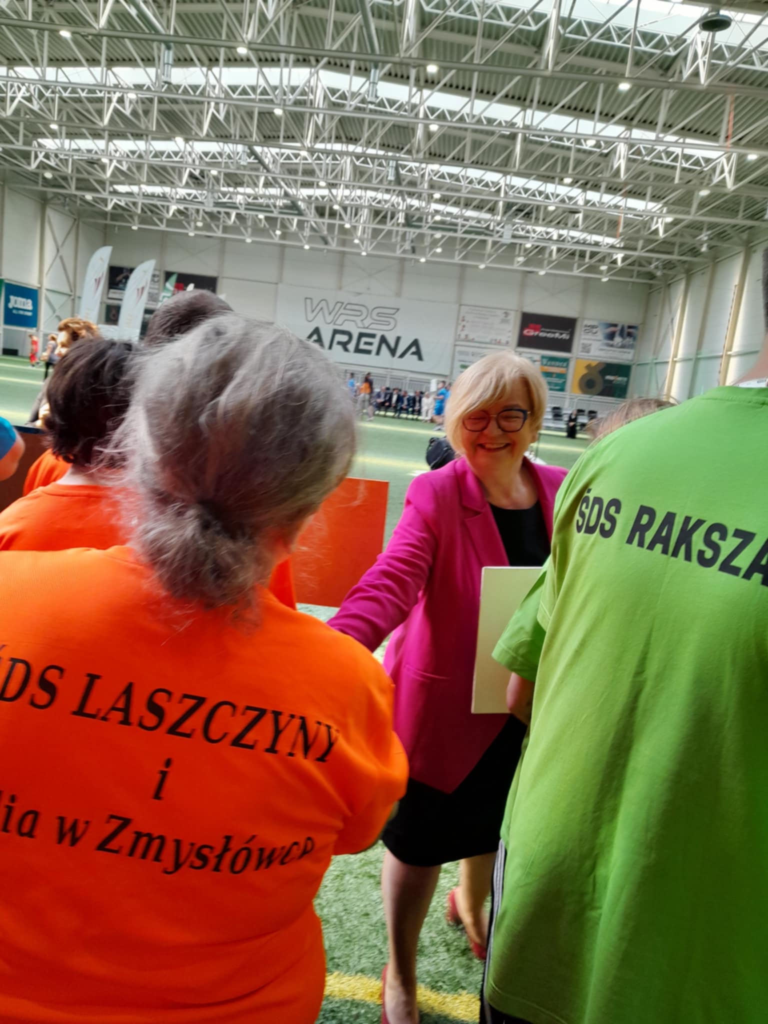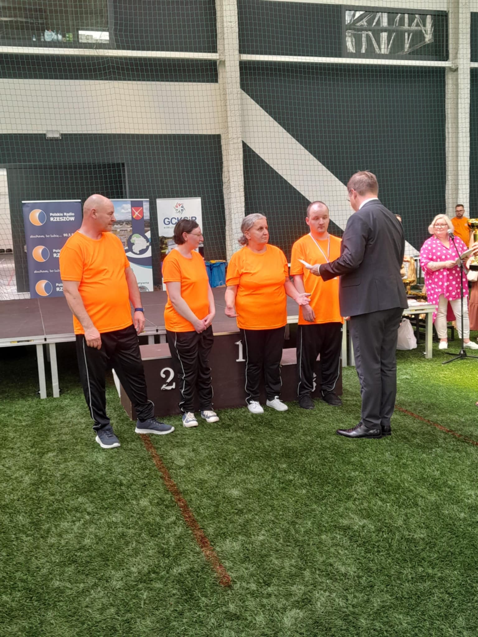 W gronie uczestników zawodów znalazła się również delegacja Środowiskowego Domu Samopomocy w Laszczynach i Filii w Zmysłówce. Nasi reprezentanci konkurowali w następujących dyscyplinach: rzut woreczkiem do celu, strzał do bramki unihokejem, rzut do kosza oraz strzał piłką nożną do bramki.