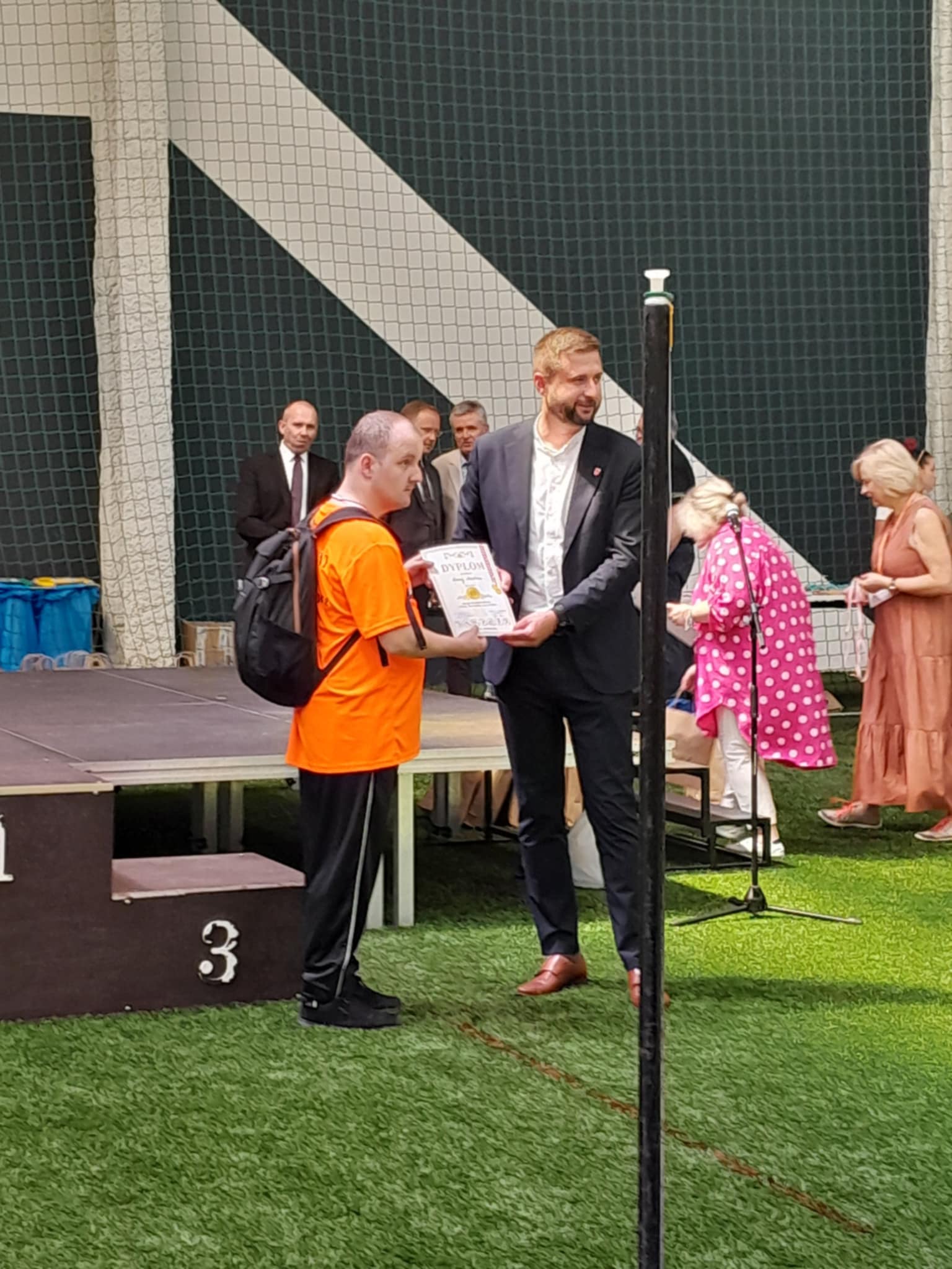 Z satysfakcją informujemy o znaczącym sukcesie jednego z naszych uczestników. Pan Maciej Martula, po wykazaniu się wysokim poziomem umiejętności i determinacji w zaciętej rywalizacji, zdobył trzecie miejsce na podium w kategorii strzału piłką nożną do bramki. Składamy serdeczne gratulacje z tytułu odniesionego osiągnięcia.
