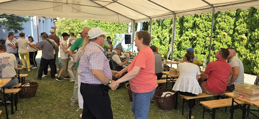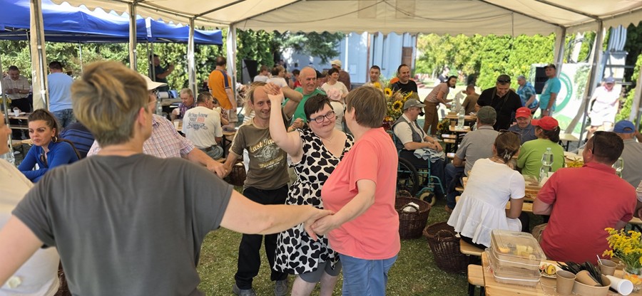 W czwartek, 28 sierpnia 2025 roku, na zaproszenie Środowiskowego Domu Samopomocy w Sarzynie, nasza delegacja wzięła udział w spotkaniu integracyjnym pod hasłem „Dzień Ziemniaka”. Wydarzenie miało wyjątkowy charakter, ponieważ połączono je z obchodami 26. urodzin funkcjonowania ośrodka w Sarzynie.